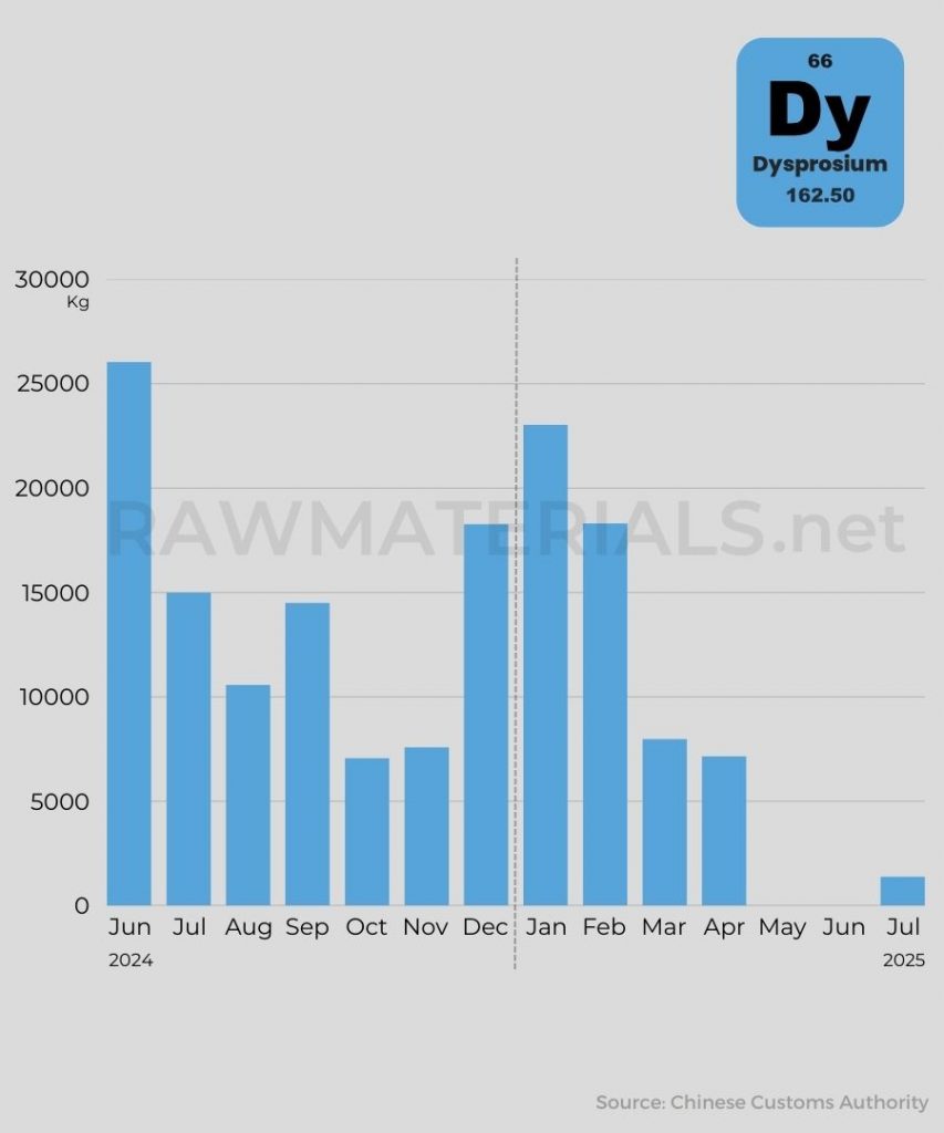 Dysprosium exports from China over the last year.