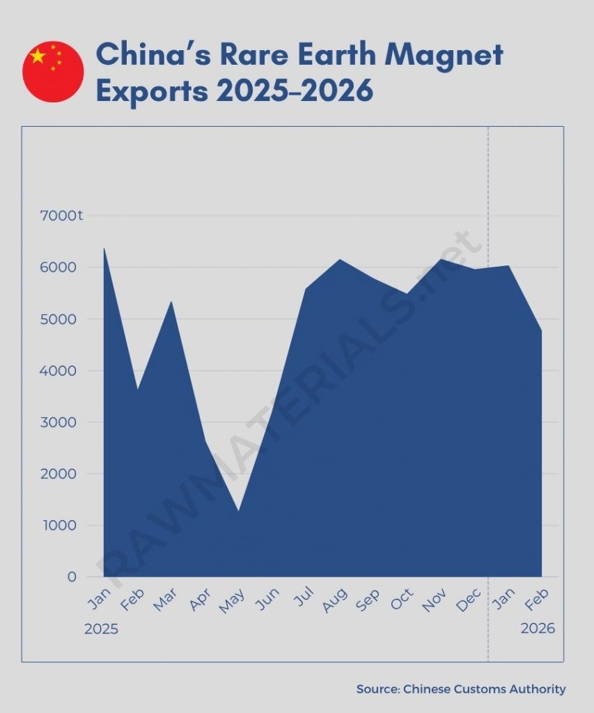 Chinese customs authorities released data on the export of rare earth magnets on Friday. In January, shipments totaled 6,024 tons, roughly matching the previous year’s level. Germany received over 20 percent of this volume, while smaller quantities were sent to South Korea, the United States, and Vietnam.